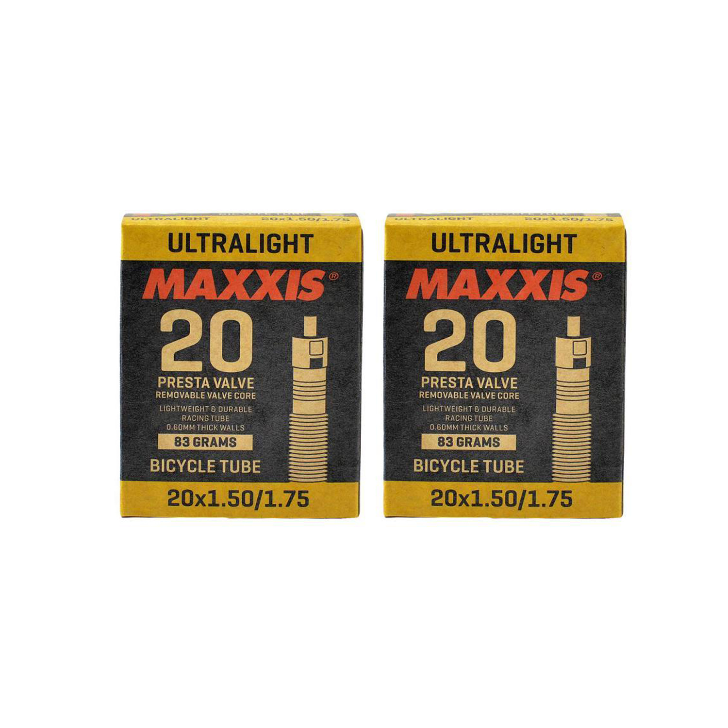 MAXXIS ULTRALIGHT 20 x 1.50-1.75 Bike Inner Tube Presta FV, 2 pcs #STB2284-2