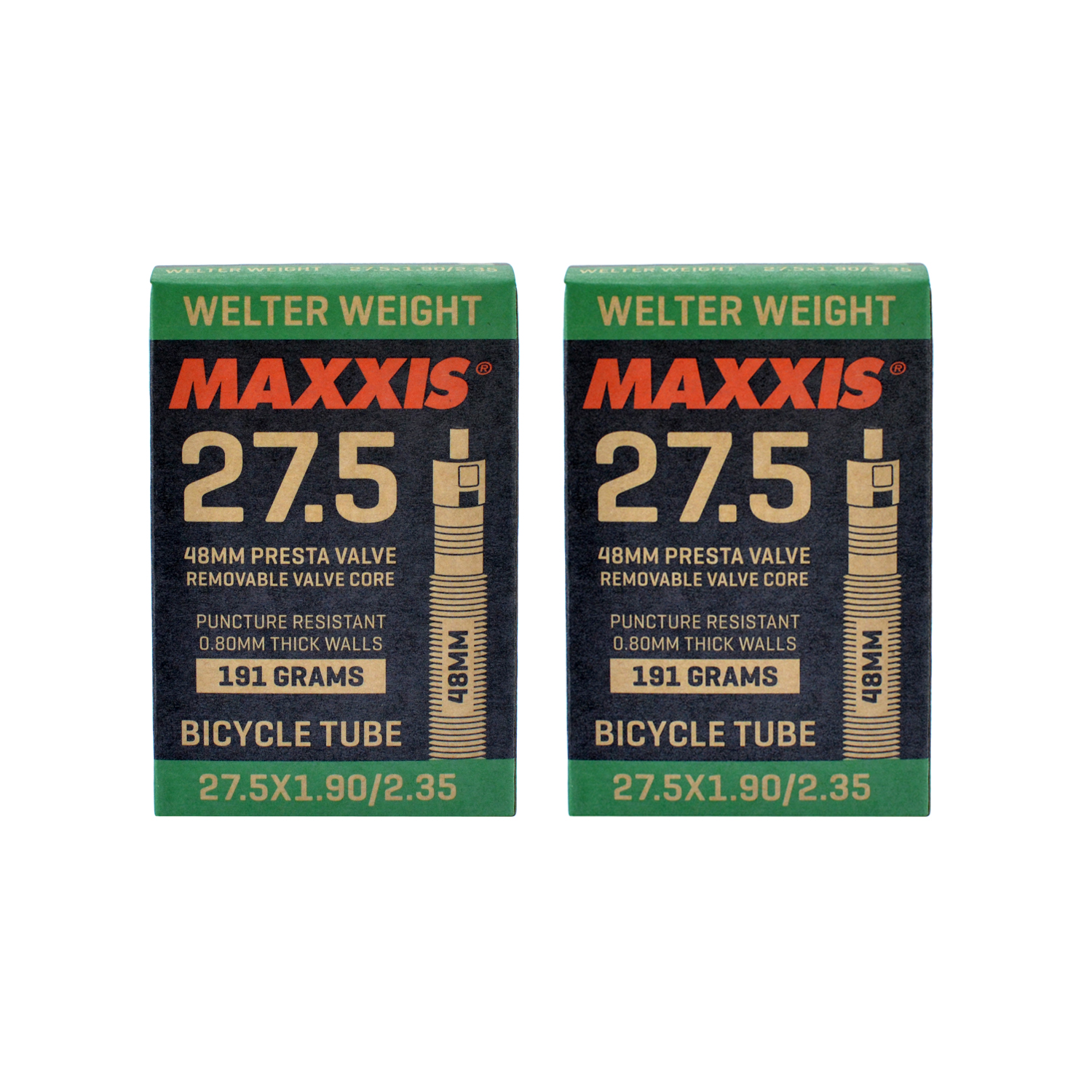 Maxxis Welter Weight 27.5 x 1.50-1.75 48mm Presta FV Bike Inner Tube, 2 pcs #STB2179-2
