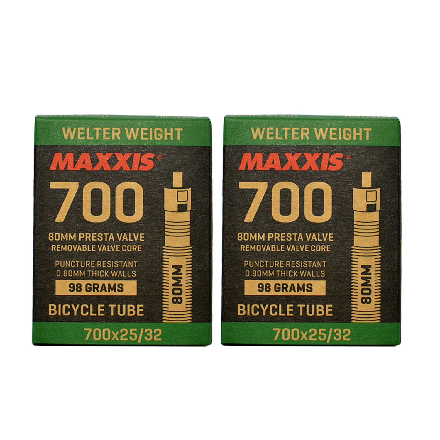 Maxxis Welter Weight 700x25-32C 80mm Bike Inner Tube Presta FV, 2 tubes #STB2026-2