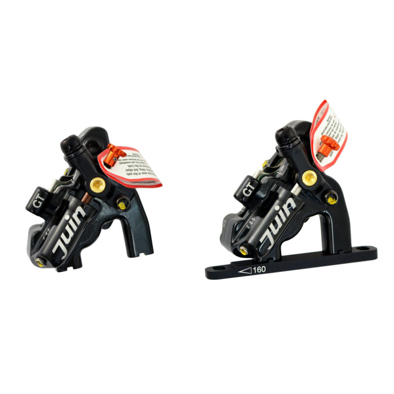 The Juin tech GT-F hydraulic cable pull road disc brake set offers a unique solution to the rider wanting to upgrade from mechanical cable pull disc brakes.