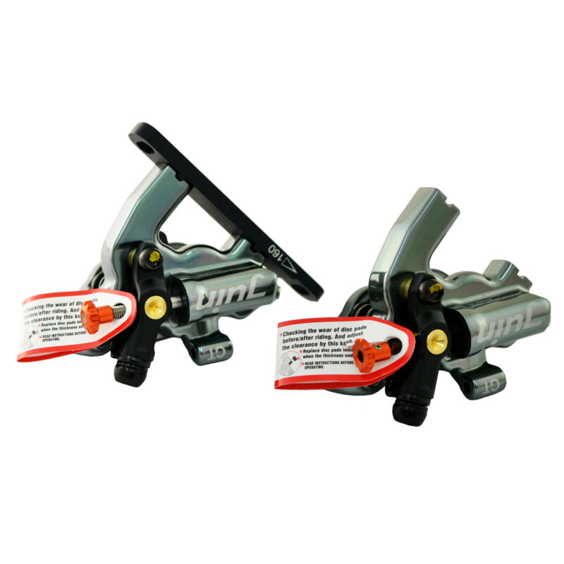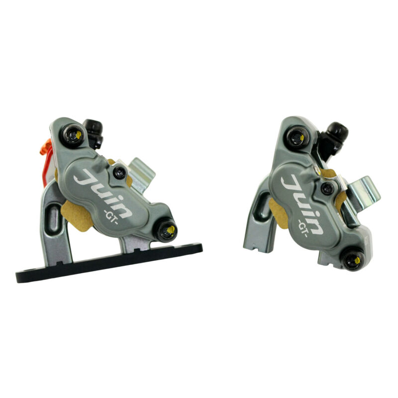 The Juin tech GT-F hydraulic cable pull road disc brake set offers a unique solution to the rider wanting to upgrade from mechanical cable pull disc brakes.