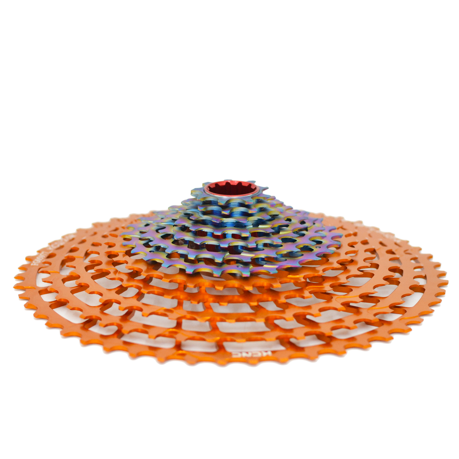 - The five large sprockets material: AL7075 anodized aluminum (30/34/40/46/52T)