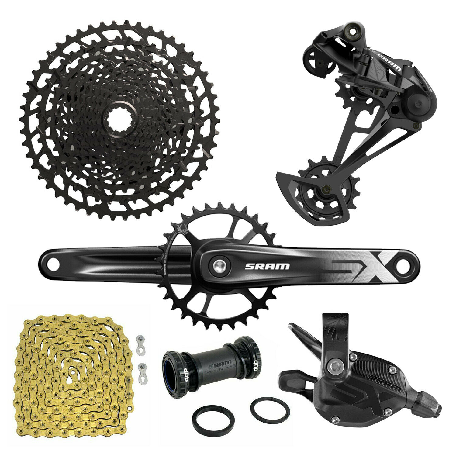 Home > BICYCLE PARTS > Groupset > SRAM SX Eagle NX Eagle 12 Speed Groupset MTB Kit 6 piece w/ YBN 12 Spd Chain GD #SY3584_170MM