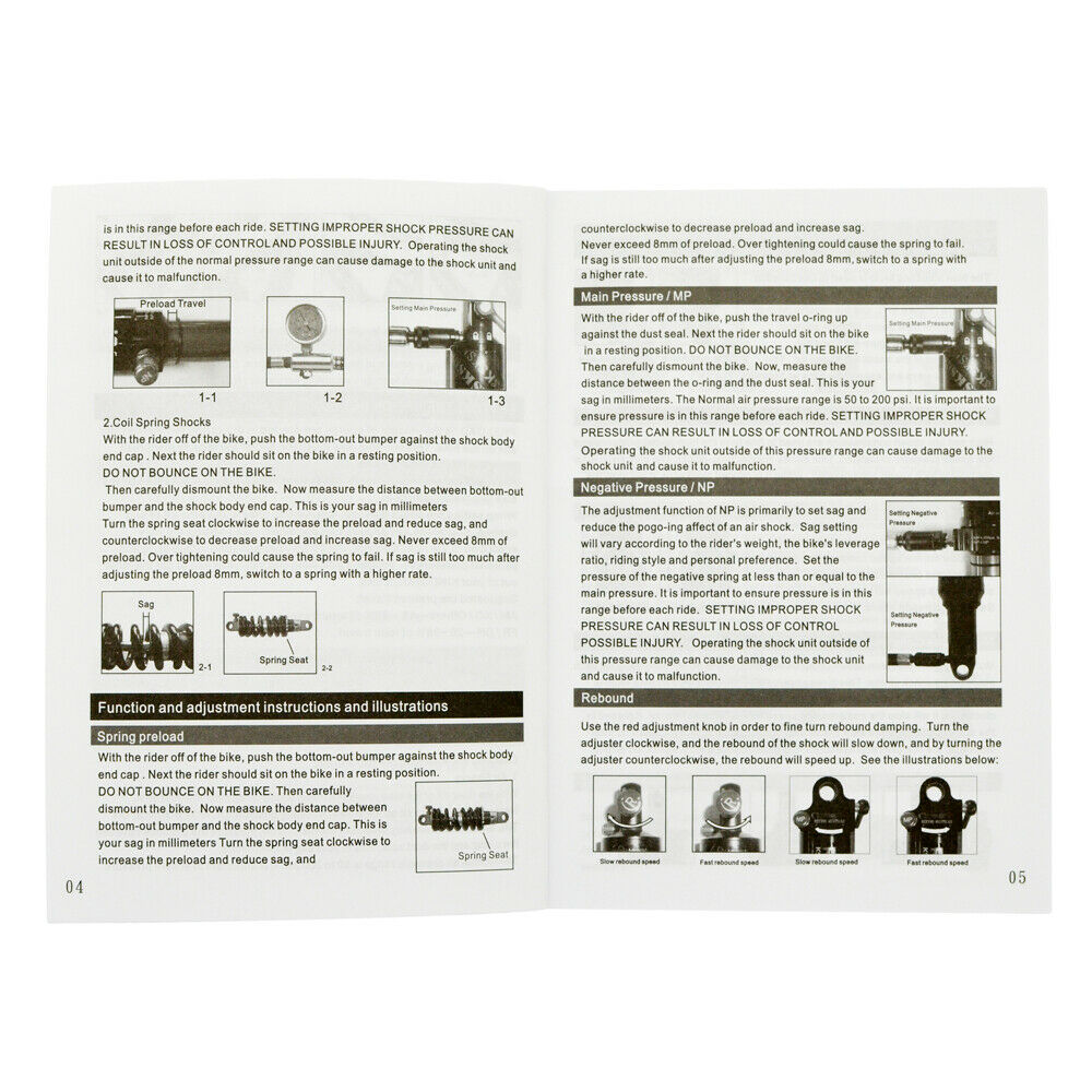 - Adjustment: Preload / independent rebound and lockout