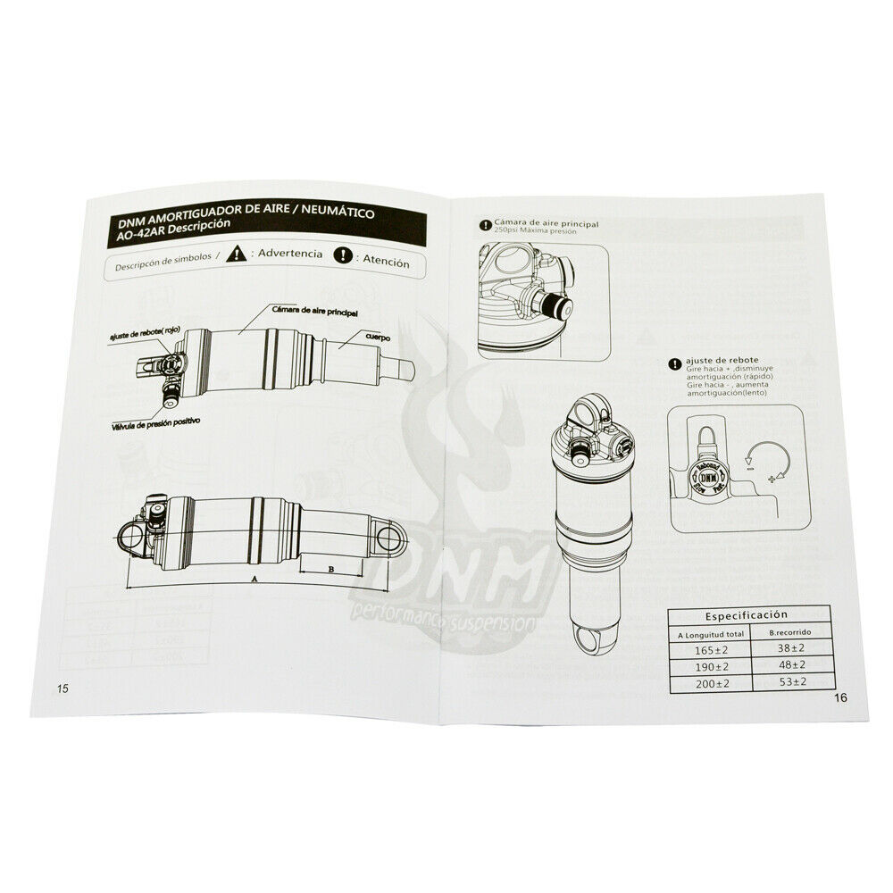 - Adjustments:Rebound / Lock out / Air Pressure Adjustable