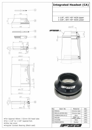 Home > BICYCLE PARTS > Head Sets > FSA No.44E 1-1/8" - 1-3/8" Integrated Headset With Top Cap #XTE1669