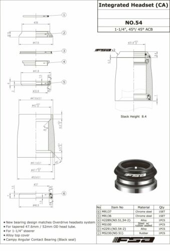 Home > BICYCLE PARTS > Head Sets > FSA No.54 Overdrive 1-1/4" Integrated Headset #XTE1715