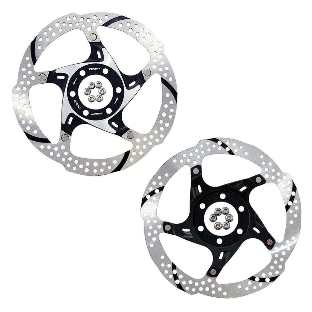TRP’s two-piece rotors offer superior heat dissipation due to the aluminum center as well as excellent stiffness to provide you with confidence in your braking and lighter weight in 180/203mm sizes. Two-piece is now combined with TRP’s new slotted rotor is design. Six recessed slots create channels to allow water, mud, and other debris trapped between the pad and rotor to escape under braking. When debris gets trapped between the pad and rotor braking power is dramatically reduced, these recessed slots maintain a more consistent brake feeling in mixed conditions.