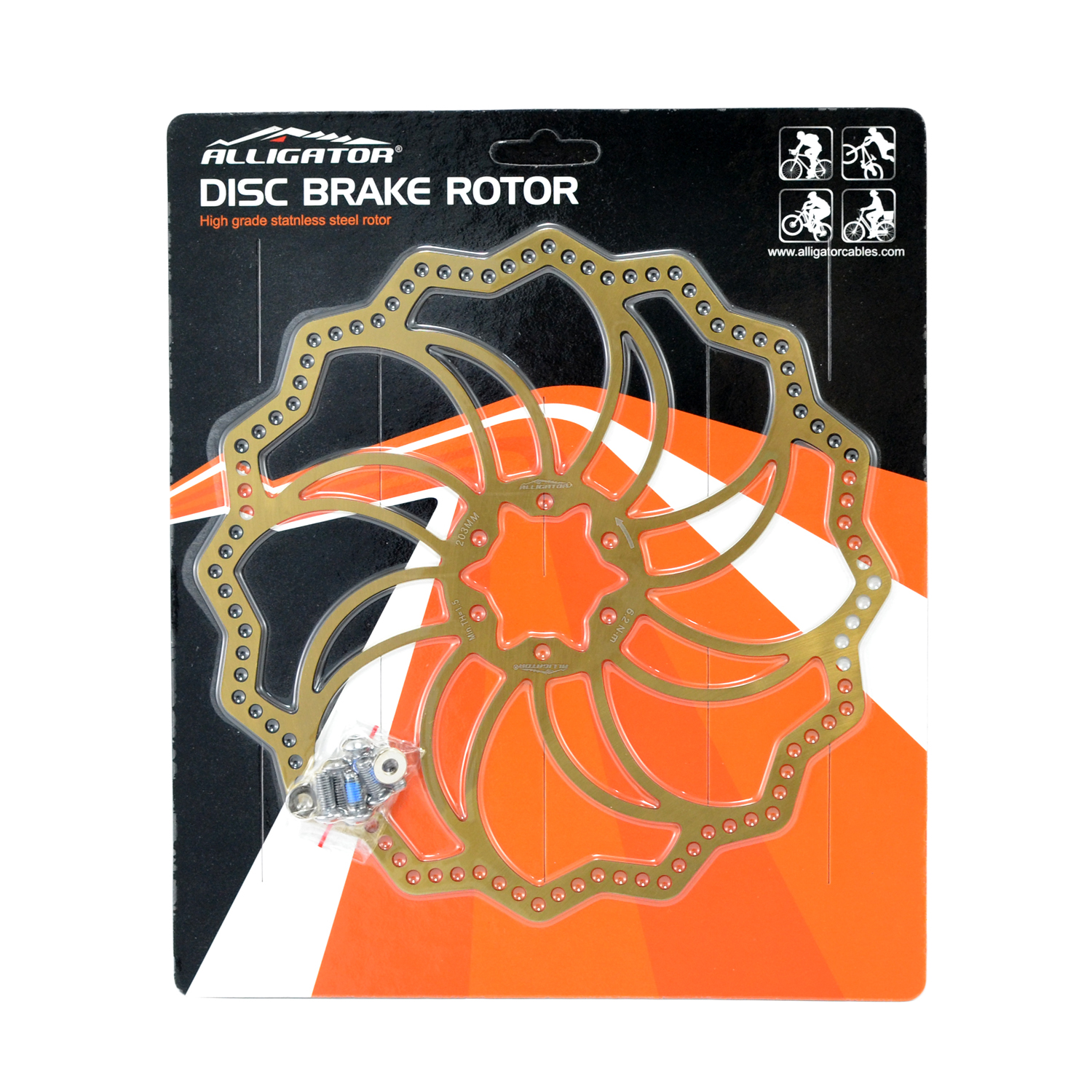 ALLIGATOR STARLITE MTB Road Bike Disc Brake Rotor 203mm , Ti Gold, 2PCS #AR2401-2