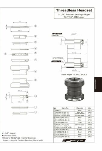Home > BICYCLE PARTS > Head Sets > FSA Orbit UF 1-1/8 Threadless Sealed Bearing Headset , Black #XTE1714