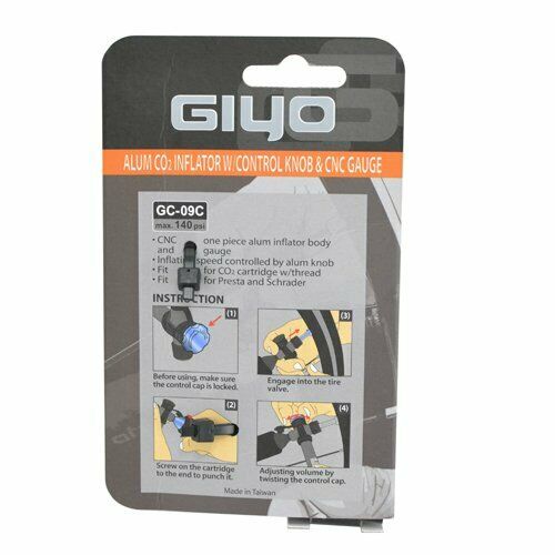 Home > BICYCLE ACCESSORIES > Pump > GIYO GC-09C Alum CO2 Inflator W/ Control Knob and CNC Gauge #ST1787