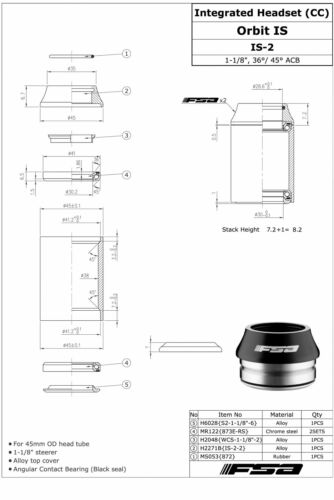 Home > BICYCLE PARTS > Head Sets > FSA Orbit IS-2 1 1/8 Threadless OD 45mm Road Integrated Headset With Top Cap # XTE1534