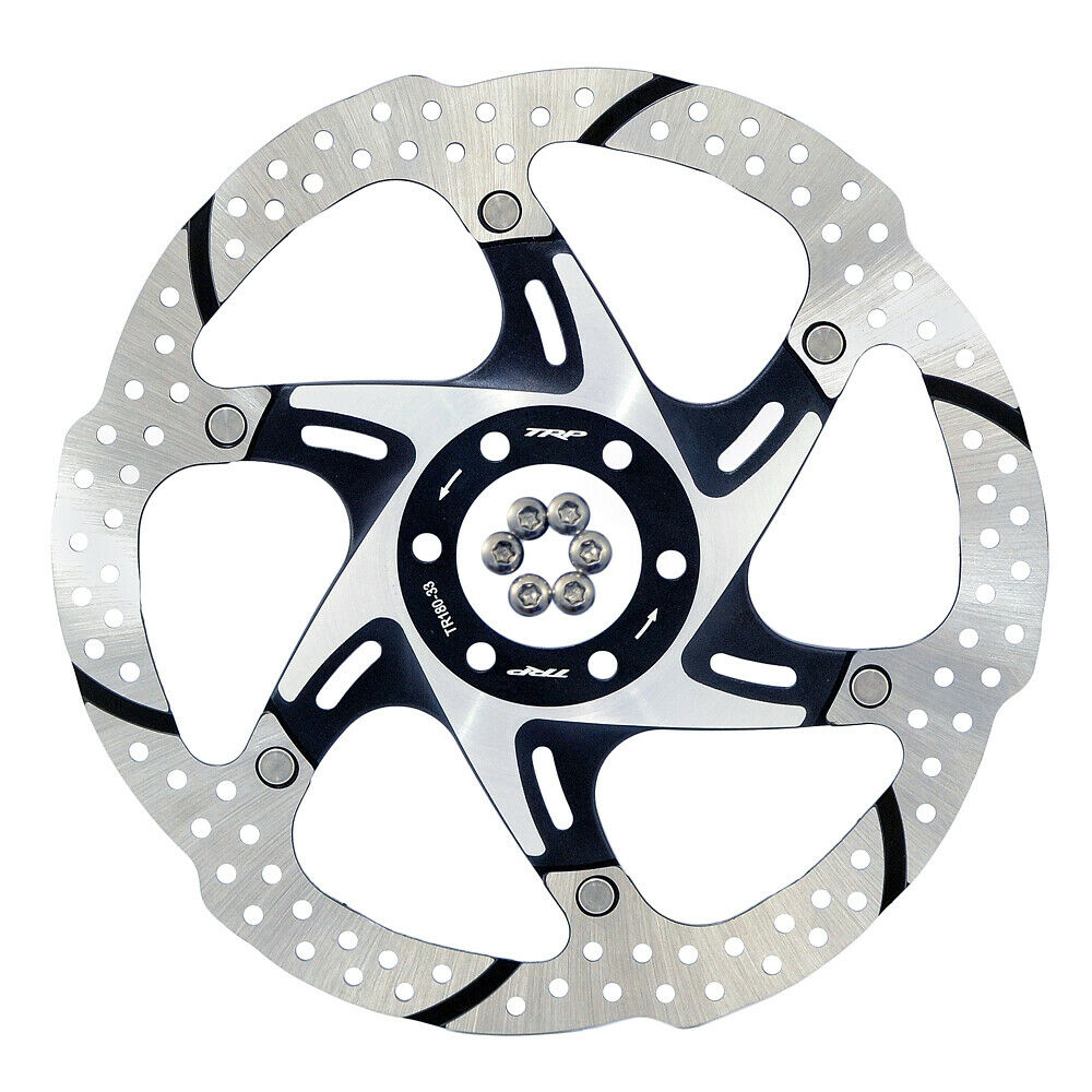 TRP’s two-piece rotors offer superior heat dissipation due to the aluminum center as well as excellent stiffness to provide you with confidence in your braking and lighter weight in 180/203mm sizes. Two-piece is now combined with TRP’s new slotted rotor is design. Six recessed slots create channels to allow water, mud, and other debris trapped between the pad and rotor to escape under braking. When debris gets trapped between the pad and rotor braking power is dramatically reduced, these recessed slots maintain a more consistent brake feeling in mixed conditions.